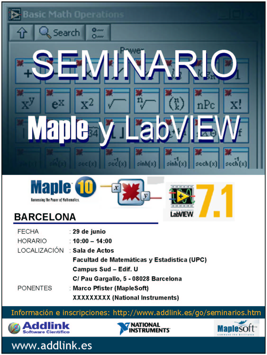 ¿Qué le parecería poder aunar las capacidades de adquisición, medida, análisis y presentación de LabVIEW, con toda la potencia matemática numérica y simbólica de Maple?