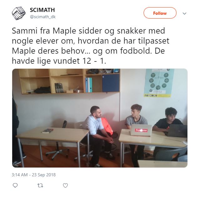 Para nosotros en Maplesoft, este nuevo y emocionante paquete ofrece una gran oportunidad no solo para mejorar nuestras relaciones con las instituciones educativas en Dinamarca, sino también para ser parte de algo importante, mejorando la forma en que los estudiantes aprenden matemáticas. Creemos firmemente en los beneficios de Maple-Skole, por lo que se ofrecerá a las escuelas sin cargo hasta julio de 2020. Realmente creo que esta nueva herramienta tiene el potencial de revolucionar la educación matemática a una edad temprana, lo que los hará mejores Preparados a medida que avanzan en su educación.