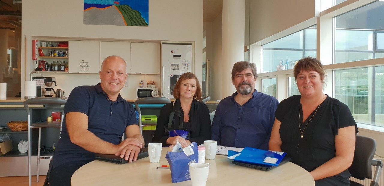 (LR) Henrik y Carolyn de Maplesoft se encuentran con Jesper y Gitte de Holbaek por Skole