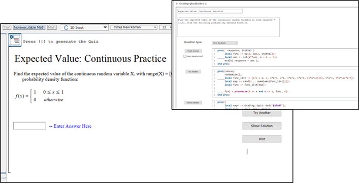 - El nuevo Creador de cuestionarios viene repleto de cuestionarios de muestra y facilita la creación de sus propias preguntas de cuestionario personalizadas. Inicie el generador de cuestionarios la próxima vez que desee crear cuestionarios interactivos con preguntas aleatorias, diferentes tipos de respuestas, sugerencias, comentarios y mostrar la solución. Probablemente sea una de mis características favoritas en Maple 2023.
