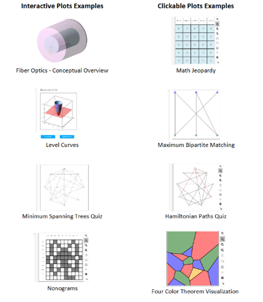 - Muchas personas han pedido que se facilite la creación de aplicaciones matemáticas interactivas más complejas y aplicaciones que requieren programación, como gráficos interactivos en los que se puede hacer clic, cuestionarios que brindan comentarios, ejemplos que brindan pasos de solución. Y me complace anunciar que lo hicimos en Maple 2023 con la introducción de Quiz Builder y Canvas Scripting Gallery.