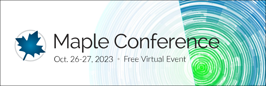 El Congreso Mundial de Maple, Maple Conference 2023, se celebrará los días 26 y 27 de octubre de 2023. Al igual que el año pasado, la conferencia de este año será un evento virtual gratuito, por lo que será una excelente oportunidad para que los clientes de todo el mundo se conecten con Maplesoft y la comunidad Maple.