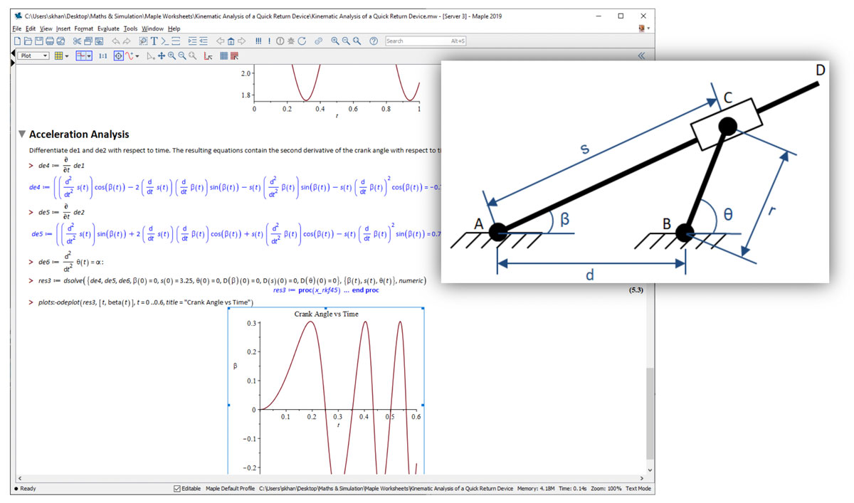 Maple es el entorno ideal para el análisis cinemático basado en ecuaciones de dispositivos mecánicos.