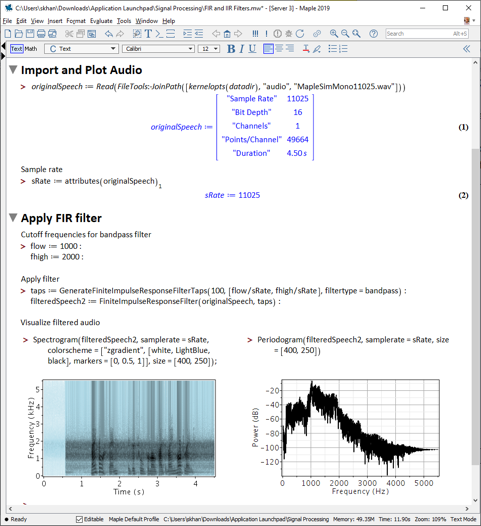 Un documento de Maple combina matemáticas en tiempo real, texto, imágenes y gráficos en un solo documento. De hecho, Maple captura las suposiciones y el proceso de pensamiento inherentes a un análisis, así como los cálculos.