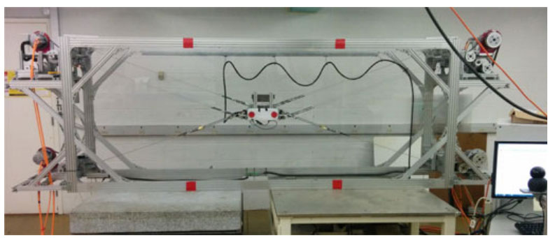 Figura 3: Un prototipo físico a pequeña escala del robot de almacenamiento accionado por cable.