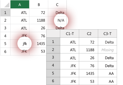 Con un cuadro de diálogo de importación de datos mejorado podrá aprovecharse de las herramientas de limpieza de datos para identificar y corregir casos de discordancia, arreglar columnas formateadas indebidamente o representar datos faltantes de forma apropiada—todo antes de importar los datos en el programa. El flujo de trabajo de importación de datos asegura que sus datos sean fiables y hace que su análisis sea más eficiente.