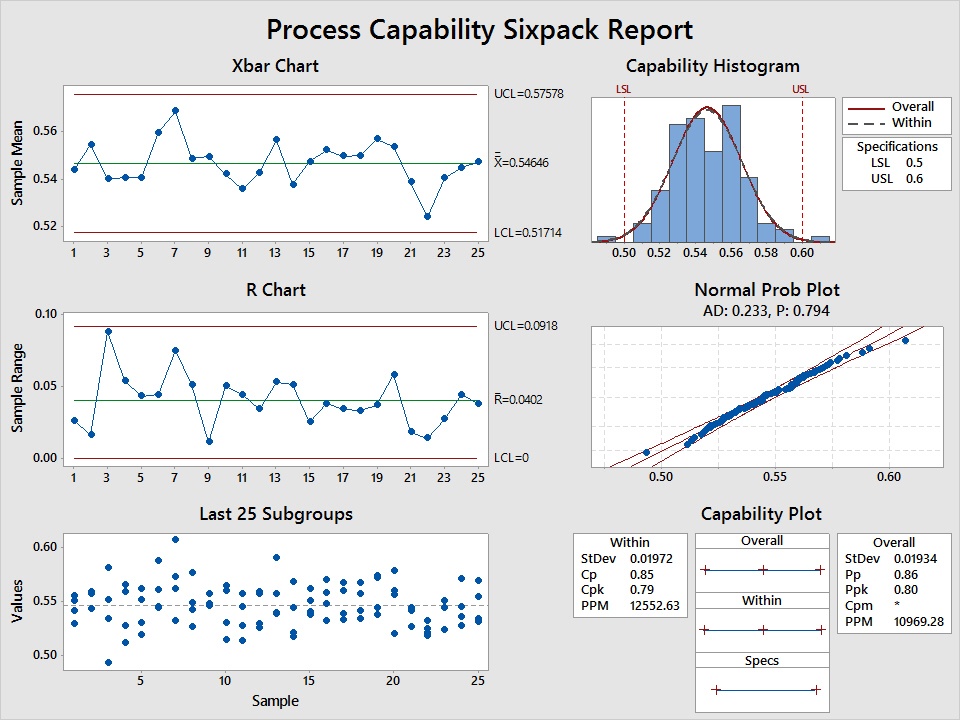 Ubicación de Minitab: Estadísticas > Herramientas de calidad > Análisis de capacidad/Sixpack O Asistente > Análisis de capacidad.