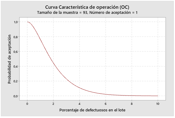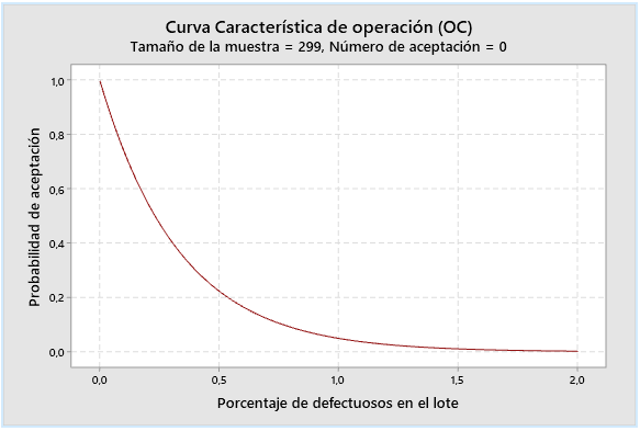 Puede verse que el tamaño de la muestra para una aceptación de 0 es mucho menor - en este caso, subir el número de aceptación de 0 a 1 ha incrementado el tamaño de la muestra de 59 a 93.