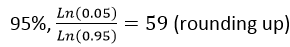 Una sencilla fórmula proporcoina el tamaño de la muestra requerida para hacer una sentencia del 95% de confianza sobre la probabilidad de que un ítem este en_especificación cuando la muestra de tamaño n tiene cero defectos.