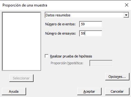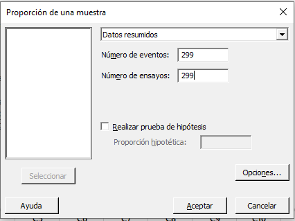 Por supuesto, si no se quiere realizar el cálculo manualmente, se puede utilizar el cuadro de diálogo de Minitab en Estadísticas > Estadísticas básicas > 1 Proporción para ver los niveles de fiabilidad para diferentes tamañoñs de muestra.