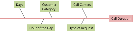 Si echamos un vistazo a la tabla Multi-Vari de arriba, se muestran todos los centros de llamadas, categorías de clientes, tiempos de espera y tipos de solicitudes. Cada centro de llamadas se ha dedicado a tipos específicos de solicitudes. Por ejemplo, las llamadas de soporte técnico solo se procesan en el centro de llamadas de Montpellier.