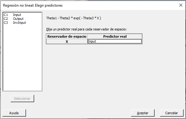 Después Minitab muestra un diálogo donde escogemos nuestro predictor.
