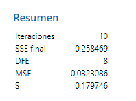 Para este ejemplo, estas estadísticas extra pueden ser convenientes para un informe, aunque los resultados no lineales sean igual de válidos. Sin embargo, en casos donde el modelo no lineal proporciona el mejor ajuste, se debería de proceder con el mejor ajuste.