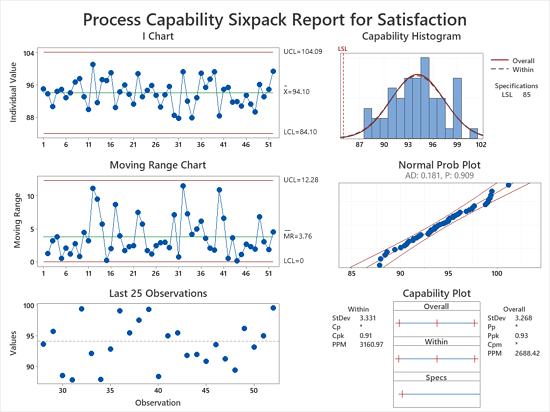 Para evaluar la capacidad del proceso de manera experta es recomendable utilizar el Paquete de capacidad de proceso Sixpack del software estadístico Minitab. Nuestro paquete de capacidad sixpack proporciona una visión integral del proceso, evaluando específicamente sus KPI, mientras se verifican los supuestos críticos.