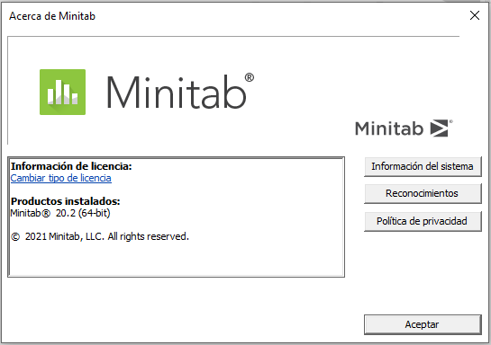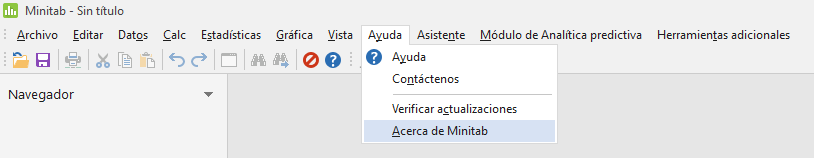 Es importante tener presente que, en cualquier momento, podemos comprobar la versión y revisión de Minitab que tenemos instalada.