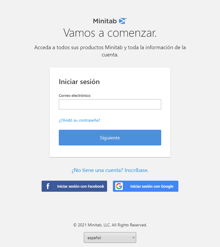 - Posibilidad de identificarse en la cuenta de Minitab mediante Facebook o Google