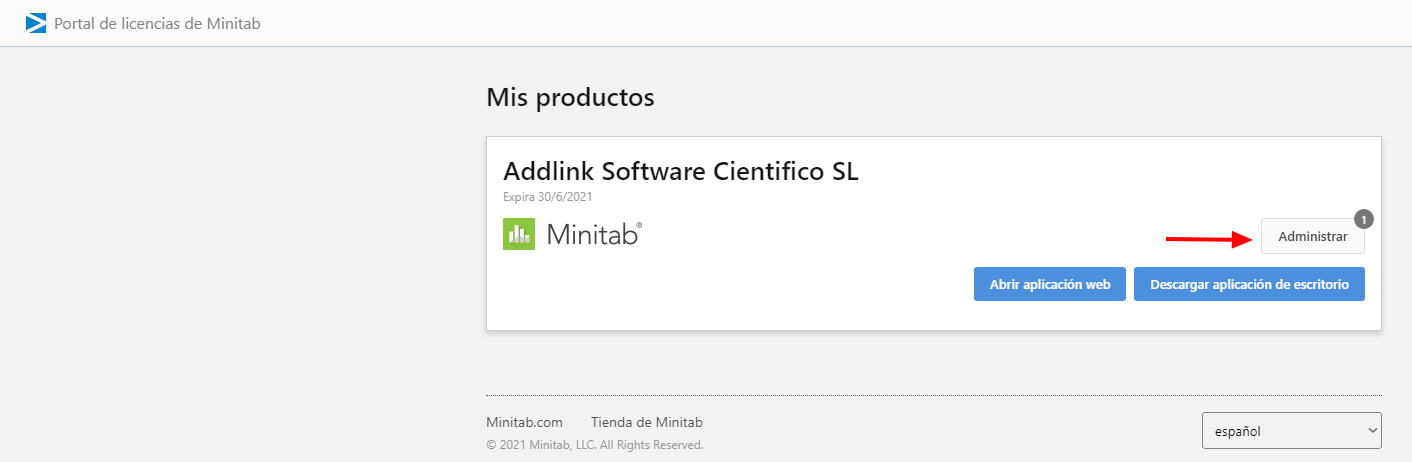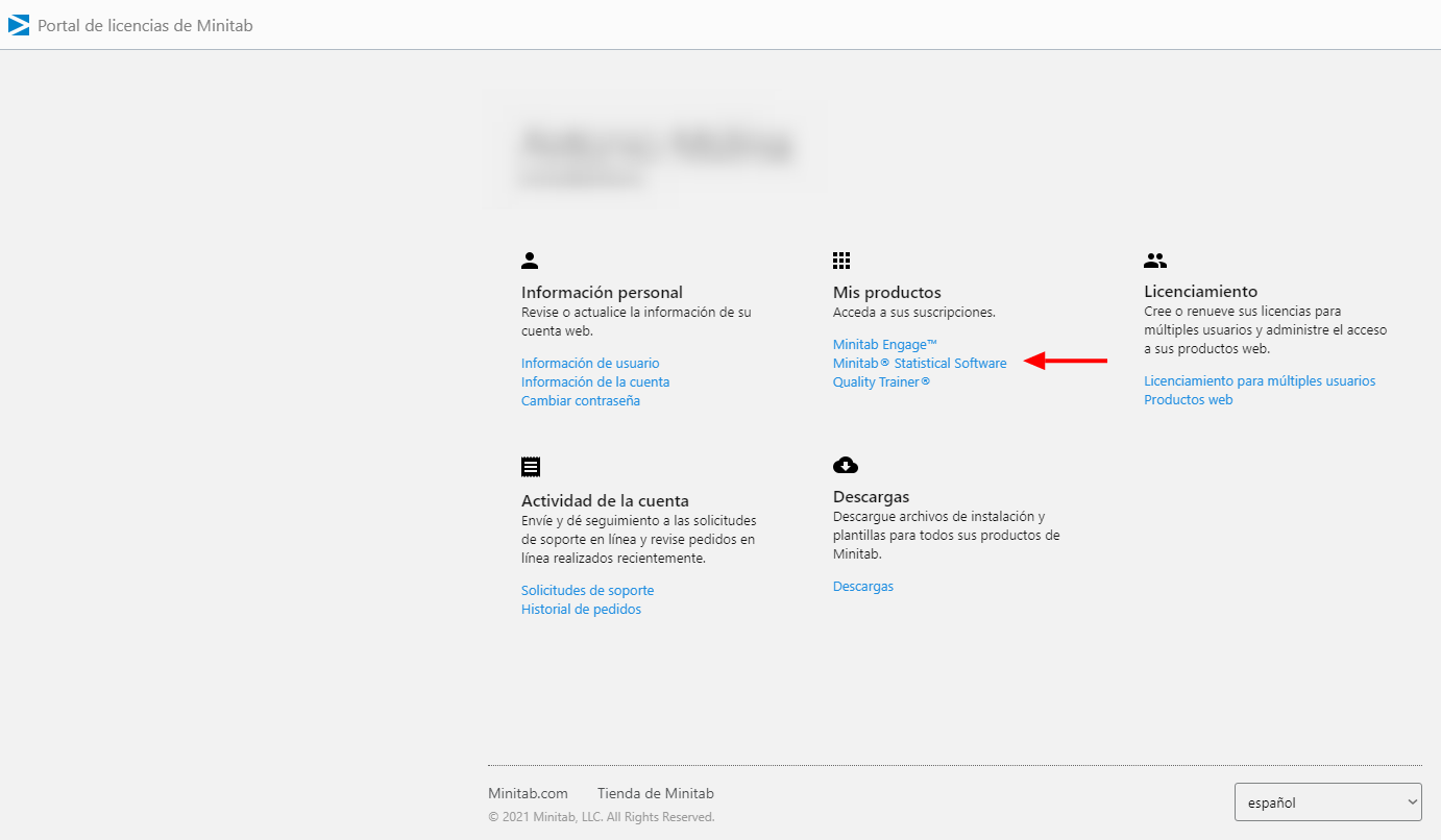 - Seleccionar Minitab Statistical Software en el apartado Mis productos: