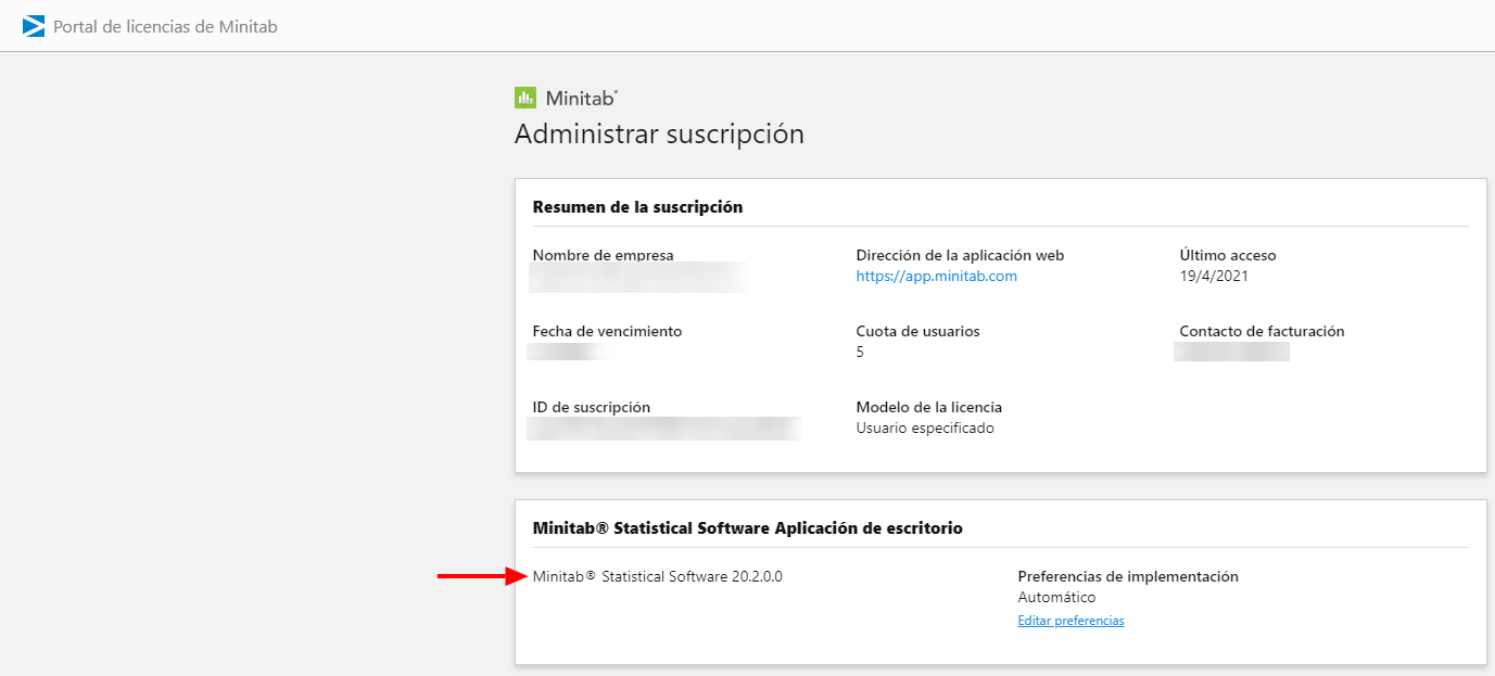 - El portal de licenciamiento muestra la versión disponible tras la actualización: