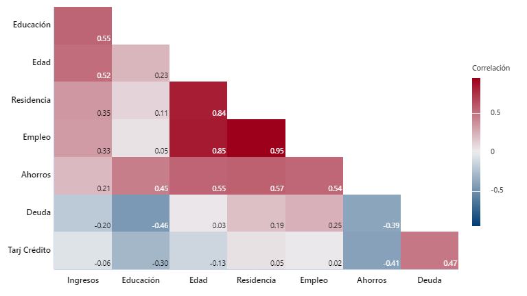 - Correlograma para la comparación visual de los coeficientes de correlación de Pearson de cada par de variables