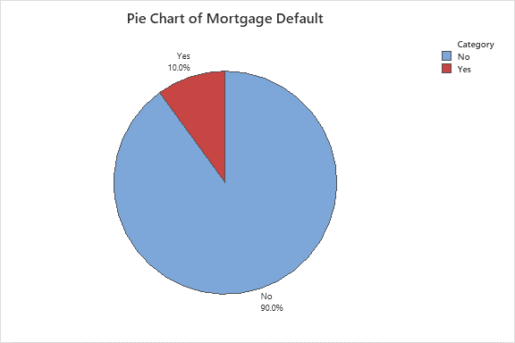 El siguiente gráfico de pastel ayuda a comprender mejor la tasa a la que los prestatarios incumplieron con su hipoteca. Vemos que el 10% de las hipotecas estaban en impago. Reducir ese porcentaje puede aumentar enormemente las ganancias.
