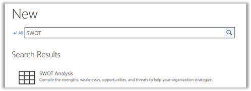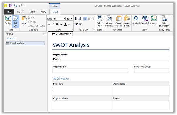 Evite el dolor de cabeza utilizando la herramienta DAFO (en inglés, SWOT) en Minitab Workspace. Todo lo que necesita hacer es abrir un archivo nuevo, seleccionar la plantilla de Análisis SWO, y ya está listo para emplear su tiempo en la comprensión y el análisis en sí mismos.