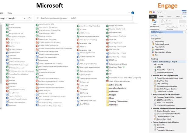 Con Minitab Engage nunca hay que preocuparse de eso. De hecho, podría crear hojas de ruta personalizadas para organizar conjuntos de herramientas (a la mayoría de los clientes les gusta la hoja de ruta de DMAIC que viene con Minitab Engage junto con algunas otras... pero también puede personalizar la suya propia).