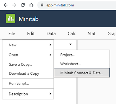 Primero, carga los datos en Minitab. Su empresa utiliza Minitab Connect para recopilar automáticamente los datos de producción de varias fuentes de datos, por lo que puede cargar fácilmente estos datos en Minitab.