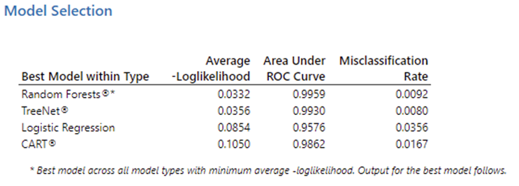 El modelo tiene un error de clasificación del 7%, que no es tan preciso como el modelo TreeNet, por lo que Susan decide usar el modelo TreeNet.