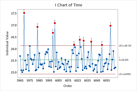 Minitab ofrece gráficas de control raras, como Tiempo entre eventos (gráfica T) y Promedio móvil geométrico (gráfica G). Estos gráficos se pueden usar para monitorizar y controlar ciertos aspectos de la gestión de inventario, como el seguimiento de los plazos de entrega, el análisis de patrones de reposición, el seguimiento de los indicadores de rendimiento del inventario y la detección de la variabilidad del proceso. Con estos gráficos, los gerentes de la cadena de suministro pueden tomar decisiones basadas en datos para optimizar los niveles de inventario y mejorar el rendimiento general de la cadena de suministro.