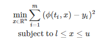 Considérese un proceso que es observado en los instantes de tiempo ti y medido con resultados yi, para i=1,2,…,m. Además, se considera que el proceso se comporta de acuerdo con un modelo numérico ϕ(t,x) donde x son parámetros del modelo. Dado el hecho que las medidas pueden ser imprecisas y que el proceso puede no seguir exactamente el modelo, es beneficioso encontrar parámetros del modelo x de forma que el error del ajuste del modelo a las medidas se minimice. Esto se puede formular como un problema de optimización en el que cada x son las variables de decisión y la función objetivo es la suma de errores cuadráticos del ajuste de cada medida individual, de forma que: