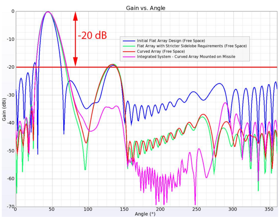 Los ingenieros de Remcom han desarrollado una nota de aplicación para demostrar el proceso de añadir un array de antenas confomes, guiadas electrónicamente al cuerpo de un misil de alta velocidad. La simulación EM asegura que el diseño final se ajusta a todos los requerimientos antes de que empiece la fase de construir el prototipo. Esta simulación 3D compleja, incluyendo los múltiples elementos del array con superficies curvas, se completó en unos pocos minutos en lugar de horas, gracias al uso de la aceleración XStream GPU de XF7.