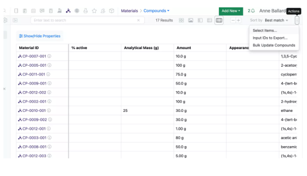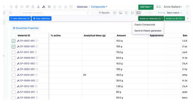 Por último, los usuarios de CRO acceden y gestionan fácilmente sus órdenes de trabajo y experimentos de Synergy a través de la aplicación dedicada a Synergy CRO. El tipo de usuario distintivo de Synergy CRO y la aplicación dedicada nos permiten proporcionar un delimitamiento automatizado de CRO, filtrado de información patentada como ID de material y propiedades ocultas de CRO, y una fácil priorización del trabajo a través de los tableros Kanban.