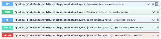 Se ha agregado un conjunto de puntos finales para administrar capas de anotación en placas. Hay puntos de conexión para obtener, crear, actualizar y eliminar capas de anotación de un contenedor de placas.