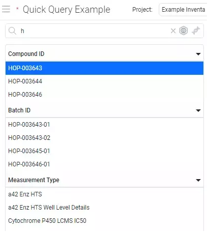 La consulta rápida de Integrated Summary le permite profundizar rápidamente en un conjunto particular de datos centrados en un solo activo, un lote/lote o un tipo de medición. Utilice el tipo siguiente para encontrar una entidad o un tipo de medición de interés.