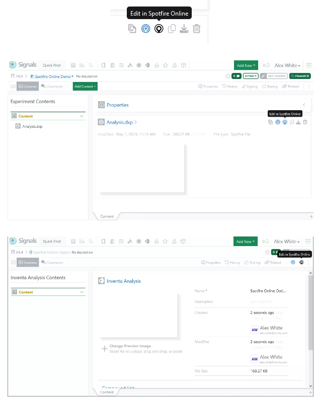 Los usuarios ahora tienen la opción de editar y ver los archivos Spotfire y los objetos de análisis Inventa dentro de su navegador web, anteriormente disponible en versión beta, ahora está disponible para todos los sistemas. Spotfire Online no requiere instalación, es compatible con Mac y se abre en una nueva pestaña del navegador.