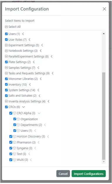 Además, los roles y privilegios relacionados con Synergy, así como los usuarios de CRO y CRO, ahora se pueden transferir de un inquilino a otro mediante la transferencia de configuración.