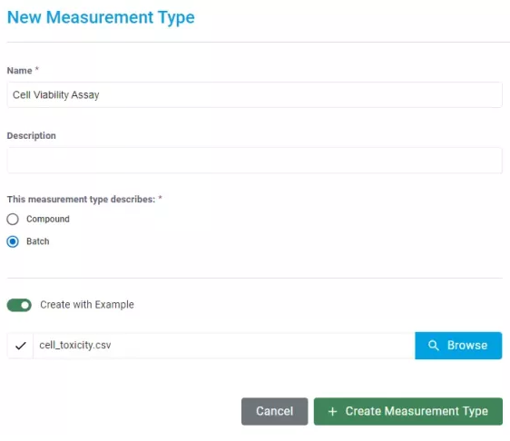 Los administradores ahora tienen la opción de utilizar un archivo de ejemplo como guía para crear simultáneamente un nuevo tipo de medición y un mapa correspondiente.