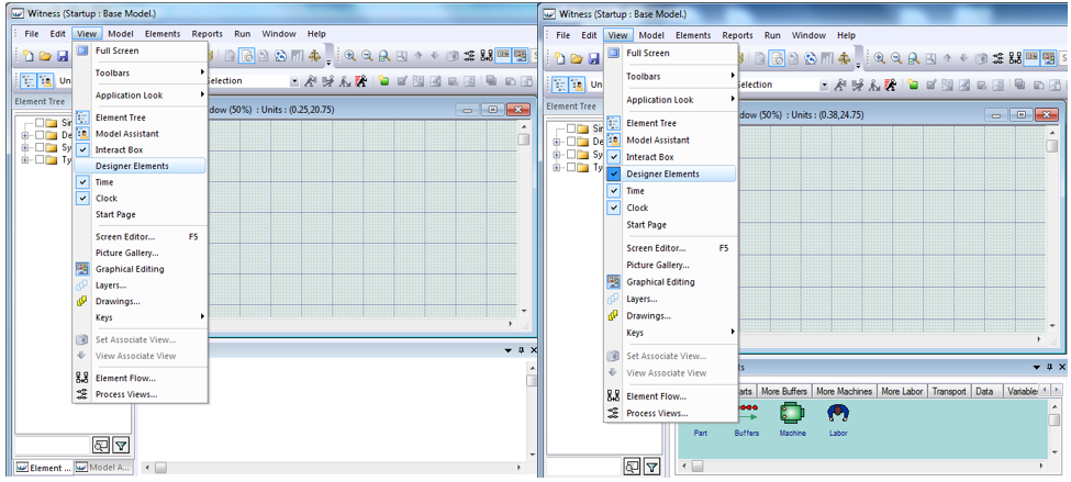 Para activar la ventana Designer Element, seleccione View en la barra de menú estándar y luego seleccione la opción Designer Element como se ve en la imagen a continuación. Una vez seleccionada, debería aparecer un icono de marca de selección junto a la opción Designer Element.