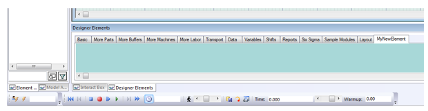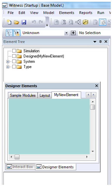 - En la ventana Árbol de elementos (Element Tree), seleccione el elemento de interés con el botón izquierdo del mouse y, mientras mantiene presionada la tecla Ctrl, arrastre el elemento a la carpeta Designer. Verifique que el elemento ahora se agregue a la pestaña Designer Element seleccionada. Ahora puede usar el elemento en su modelo tantas veces como desee.