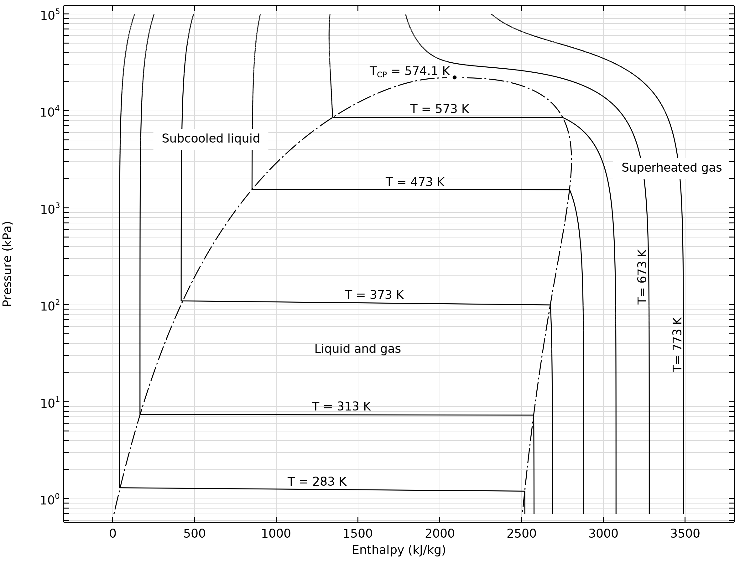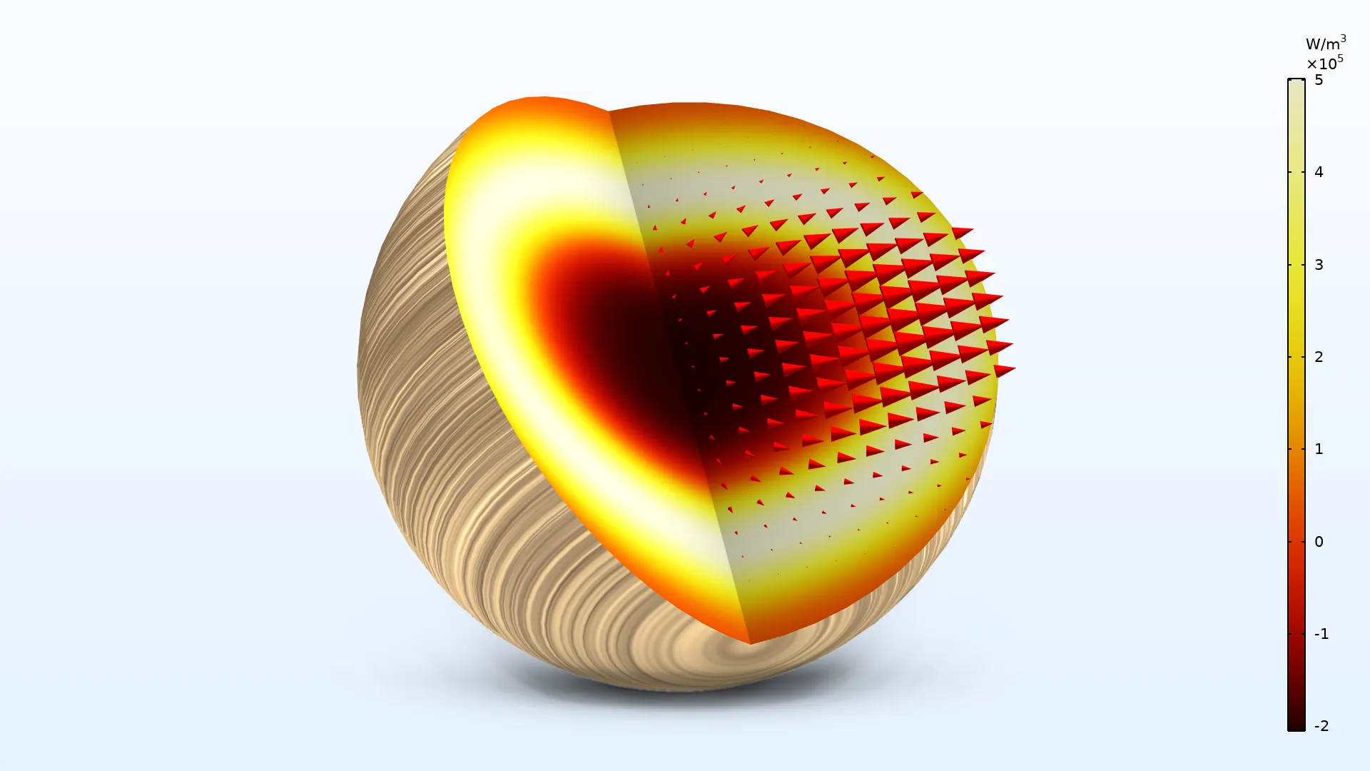 Ahora puede modelarse el flujo reactivo no isotérmico en medios porosos con la función de acoplamiento Reacting Flow. Debido a que esta función ahora es totalmente compatible con dominios porosos, ya no es necesario incluir una función de acoplamiento Reacting Flow y Nonisothermal Flow, y ahora también puede usar esta función en combinación con la interfaz Heat Transfer in Porous Media. Con el nuevo enfoque disponible en la versión 6.2, se obtiene una transferencia constante de masa y calor debido al hecho de que toda la física conectada (fluido, masa y calor) utiliza la misma termodinámica, definida en una interfaz Chemistry. Además, la conservación del calor ahora es más precisa ya que la difusión de entalpía se incluye automáticamente. Tenga en cuenta que para utilizar esta funcionalidad, debe agregar una función Porous Medium a cada una de las tres interfaces de física de transporte: Transport of Concentrated Species, Darcy's Law, y Heat Transfer in Porous Media.