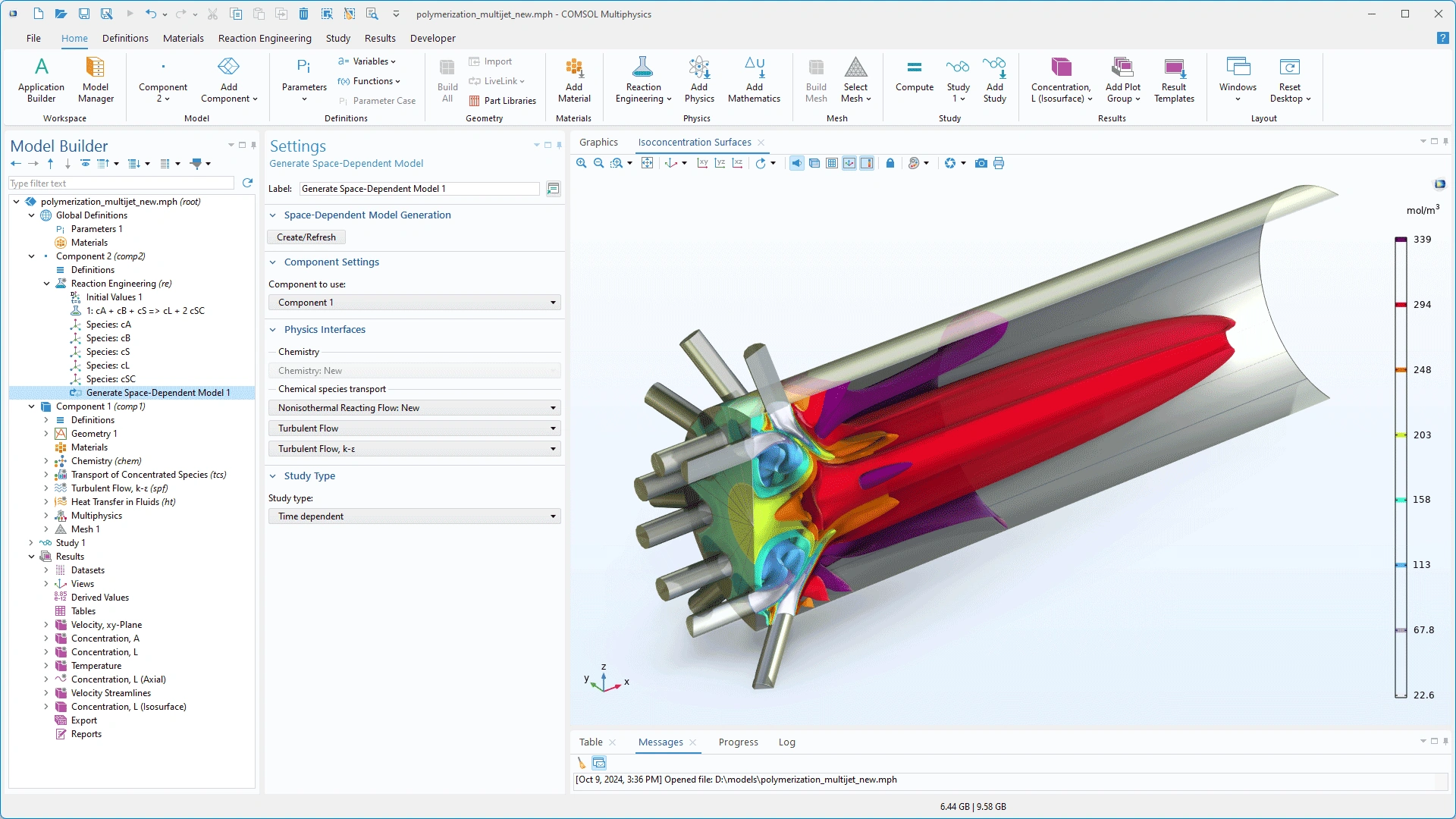 6.4 incorpora compatibilidad con flujos de reacción con simulación de grandes remolinos (LES), modelado de agregación y rotura de partículas, y una nueva función para operación continua con consumo de fase sólida y reposición de lecho.
