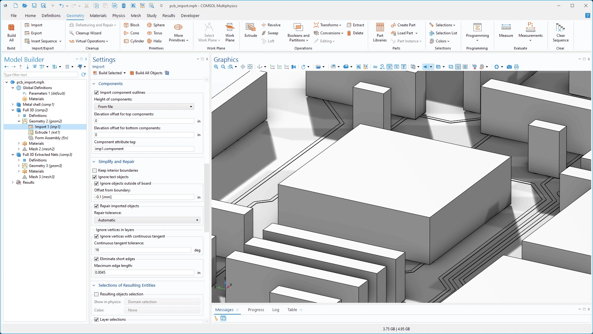 Importación de PCB mejorada para una configuración de simulación más eficiente en 3D