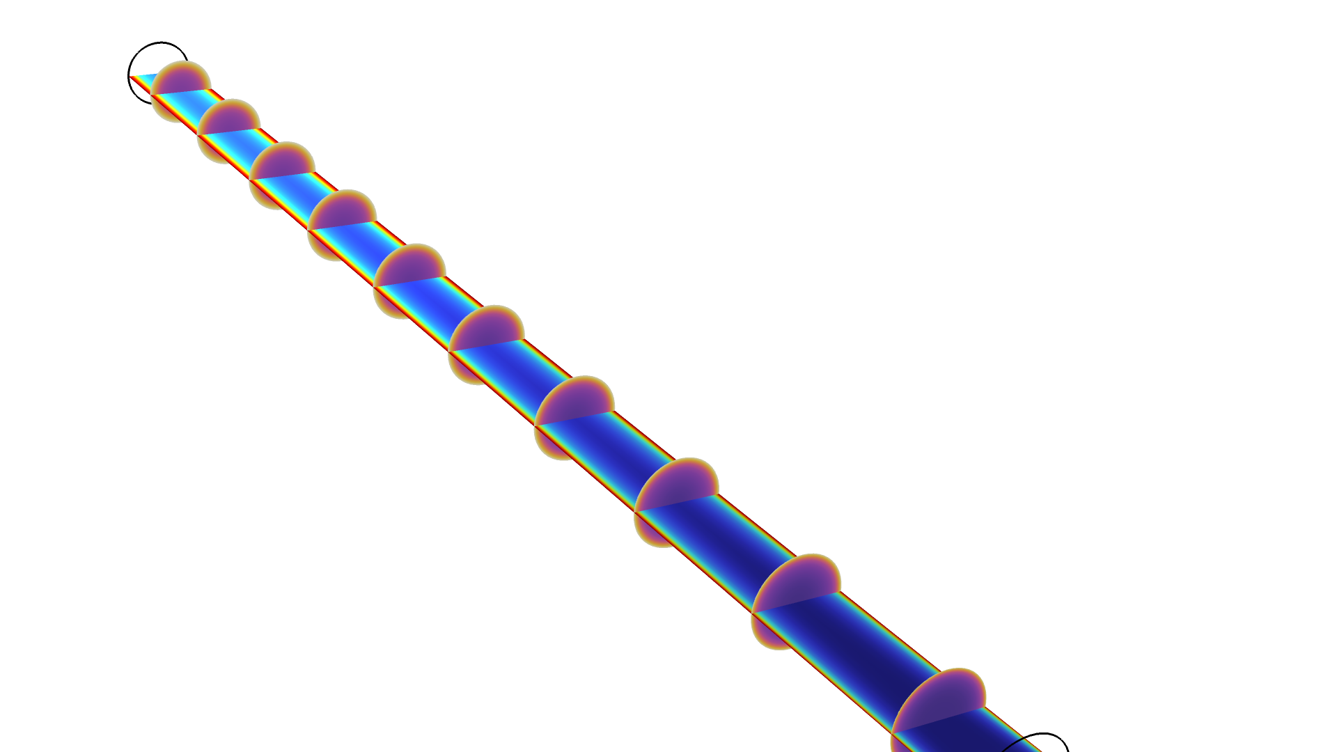 Ahora es posible incluir el efecto del volumen de los tubos especificando un radio cuando se utilizan elementos de arista y el método de elemento de contorno (boundary element method o BEM). Esta funcionalidad está disponible en las ecuaciones de transferencia de carga del electrolito en la interfaz Current Distribution on Edges, BEM.