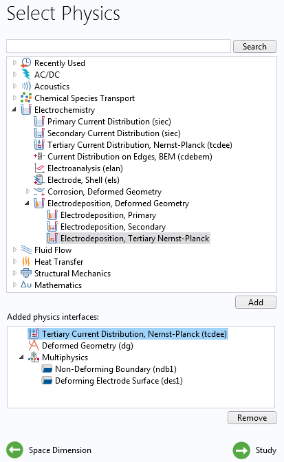 La interfaz Level set ahora se ha añadido al Electrodeposition Module para modelar problemas de electrodeposición donde la topología de la superficie del electrodo depositante cambie como resultado del proceso de deposición.