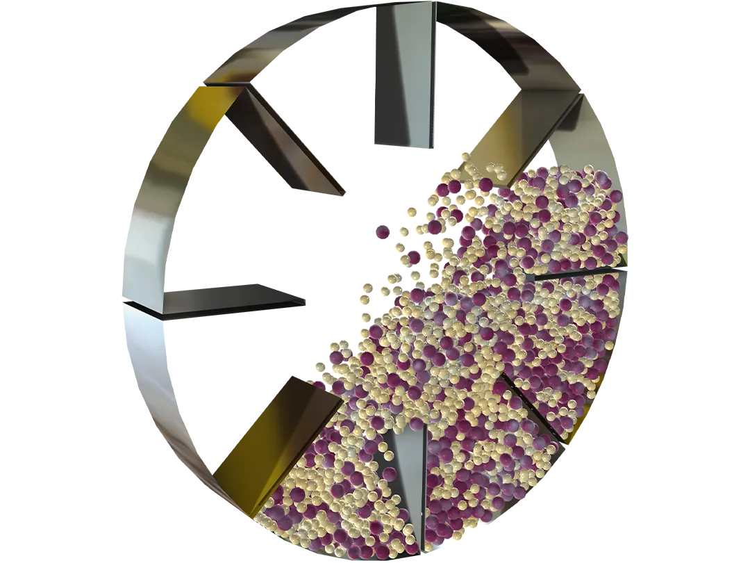 El Módulo de Flujo Granular permite a ingenieros e investigadores analizar una amplia gama de procesos granulares, como la descarga de tolvas, el almacenamiento en silos, el transporte por canaletas, la mezcla, la segregación y la distribución de polvo. Al resolver interacciones a escala de partículas, como colisiones, adhesión, resistencia rotacional y transferencia de calor, el módulo proporciona información sobre la dinámica de partículas a microescala y el comportamiento de las partículas a granel a macroescala.