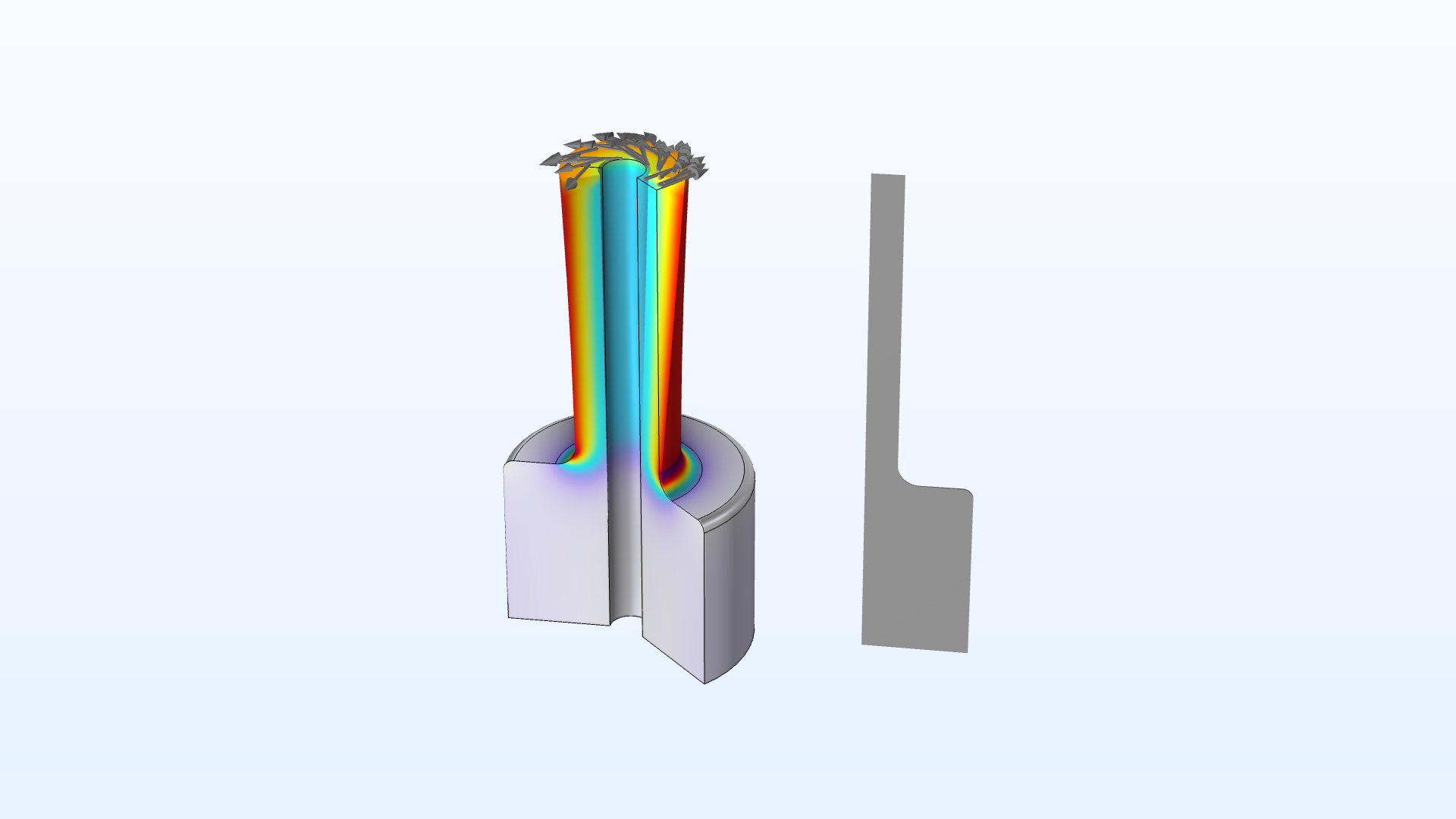Para modelar los cambios de volumen inducidos por la difusión, se ha añadido un nuevo acoplamiento multifísico de Shrinkage and Swelling que conecta de forma bidireccional las interfaces Transport in Solids y Solid Mechanics. Este nuevo acoplamiento se puede utilizar para simular los efectos de los cambios de concentración en el volumen y cómo las tensiones pueden afectar a la difusión. Esto es útil, por ejemplo, en baterías, donde pueden producirse cambios de volumen muy grandes debido al transporte de iones.