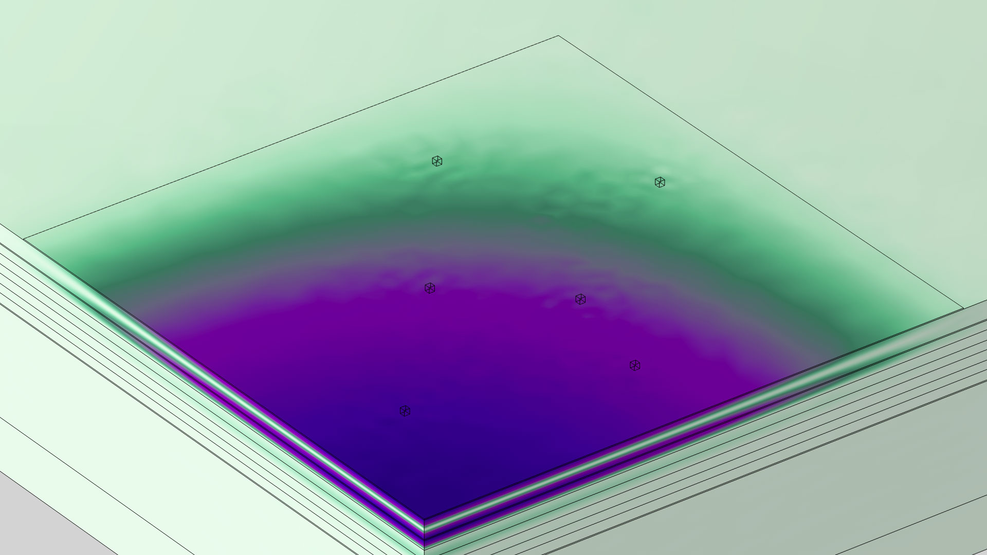 Las nuevas interfaces Electromechanics, Shell y Electromechanics, Membrane simplifican el modelado de la deformación de estructuras delgadas, como las membranas de los micrófonos, influenciadas por fuerzas electrostáticas. Estas interfaces incluyen automáticamente el acoplamiento multifísico Electromechanics, Boundary para una integración perfecta con elementos de carcasa o membrana, y utilizan la interfaz Electrostatics para modelar el campo eléctrico. Estas interfaces, que se muestran en los modelos tutoriales Brüel & Kjær 4134 Condenser Microphone y Axisymmetric Condenser Microphone, también requieren el módulo Structural Mechanics.