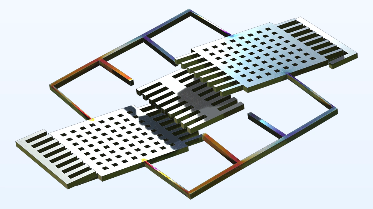 El módulo MEMS de COMSOL Multiphysics® 5.3 incluye funcionalidades ampliadas para Fundación de resortes, variables de cantidad de energía para modelado de contactos y funcionalidades de materiales externos mejoradas.