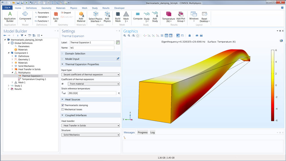 En el acoplamiento multifísico de expansión termoelástica ahora se puede seleccionar cuando la derivada temporal de las deformaciones debería actuar o no como fuente de calor en el problema de transferencia de calor. Seleccionando la nueva casilla de verificación Thermoelastic damping, el problema se hará acoplado bidireccional cuando se resuelva un problema dependiente del tiempo.