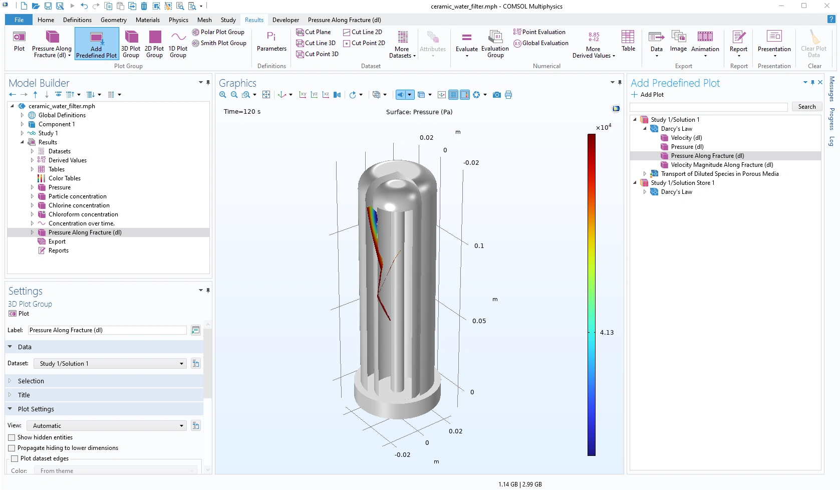 Nuevos gráficos predefinidos para presión y velocidad en el modelo Ceramic Water Filter.
